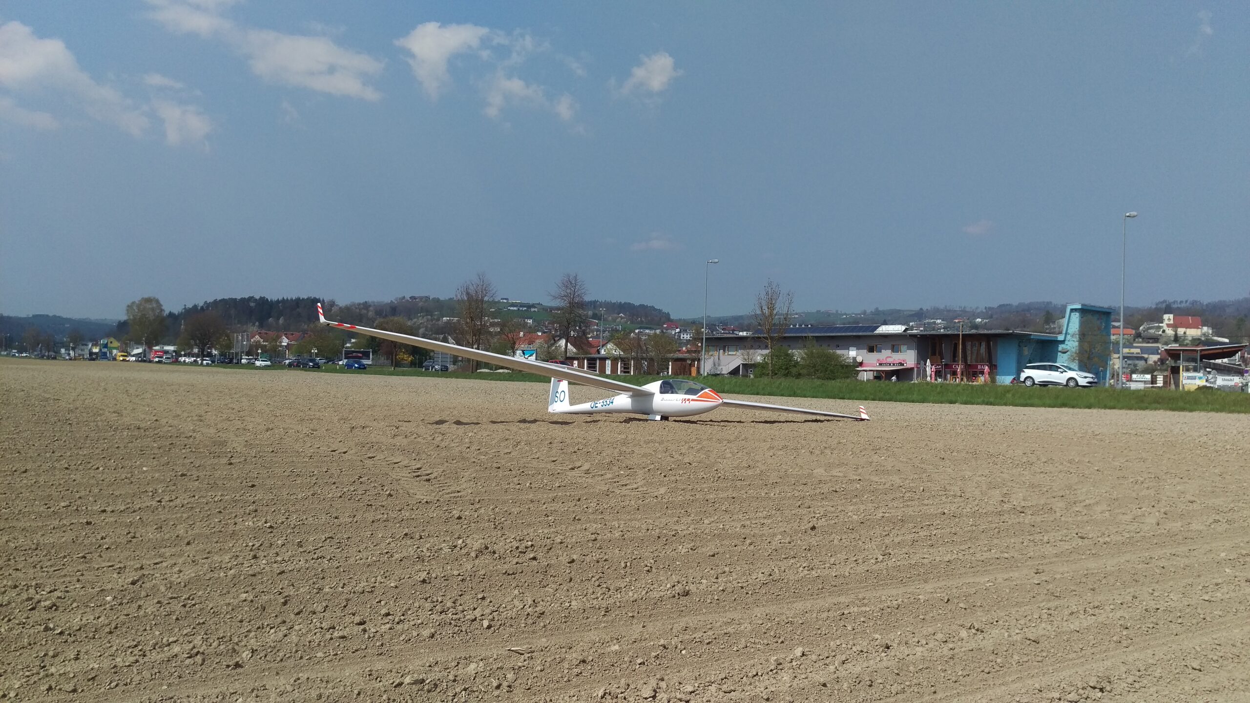 Um 12:25 LT ging es per F-Schlepp in die Luft. Das Wolkenbild bestätigte meine Wettervorhersage, genauso wie der erste Bart nach dem Ausklinken. Mit ca. 2,8 m/s integriertem Steigen ging es auf 1600m über Grund. Jetzt weiter zum Sender GIS um die Aufgabe zu starten. Soweit so gut. 1600m GND Höhe, starke Steigwerte, was soll schon schiefgehen? Das erste Problem ließ nicht lange auf sich warten. Meine Aufgabe führte mich direkt ins Blaue. Mit der aktuellen Höhe und den bisherigen Steigwerten könnte man einen Versuch wagen. Also geradeaus weiter Richtung Westen geflogen und ein bisschen im Blauen versucht Steigen zu finden. Nach ein paar Zupfern hier und da und viel Sinken habe ich das Ganze dann doch lieber abgebrochen und bin die nächsten Wolken angeflogen. Die standen westlich des Flugplatzes Eferding (LOLE). Unter der Wolke angekommen ging die Suche nach dem Aufwind los. Hier und da ging es rauf, das Steigen war aber sofort nach dem Eindrehen wieder weg. Ich bin einfach nicht mehr raufgekommen. Mein integriertes Steigen lag bei ca. 0 m/s und jeder Fehler hat mich weiter nach unten gebracht. Die Wolken waren einfach nicht mehr aktiv.